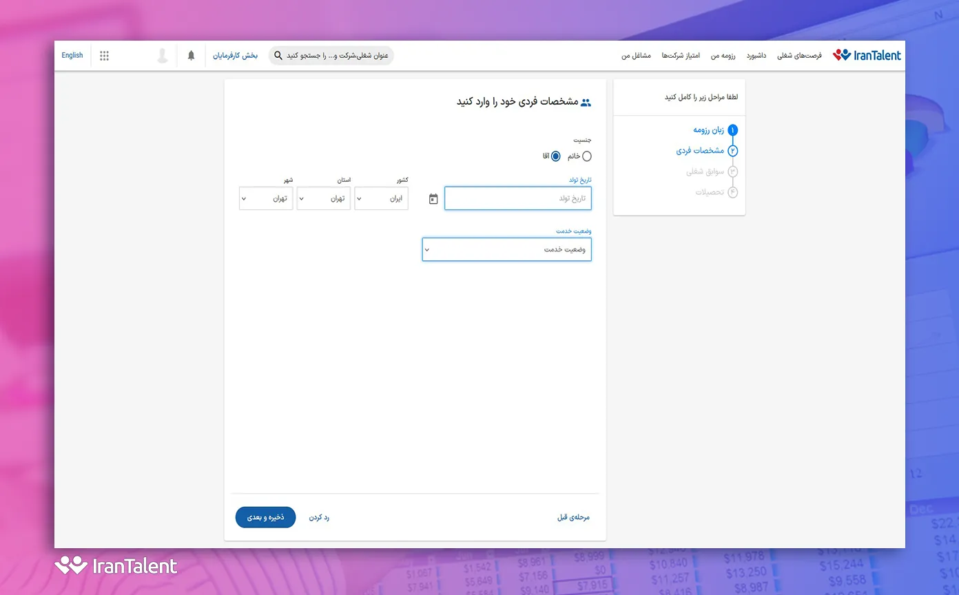 قالب رزومه ایران تلنت به شما کمک میکند مهارتها و سوابق کاری خود را به بهترین شکل ثبت کنید.
