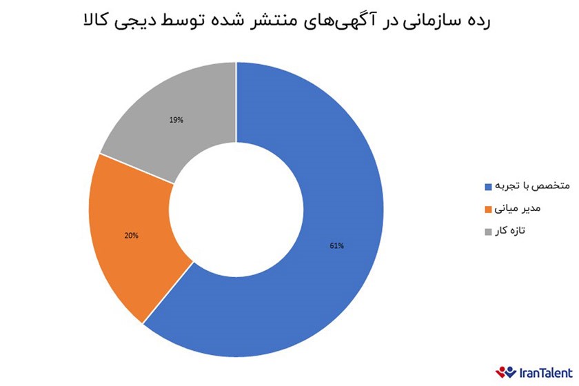 همانطور که در تصویر بالا مشخص است، ۶۱ درصد از آگهیها به افراد متخصص اختصاص داشته است و مابقی برای مدیران میانی و تازه کارها بوده است.