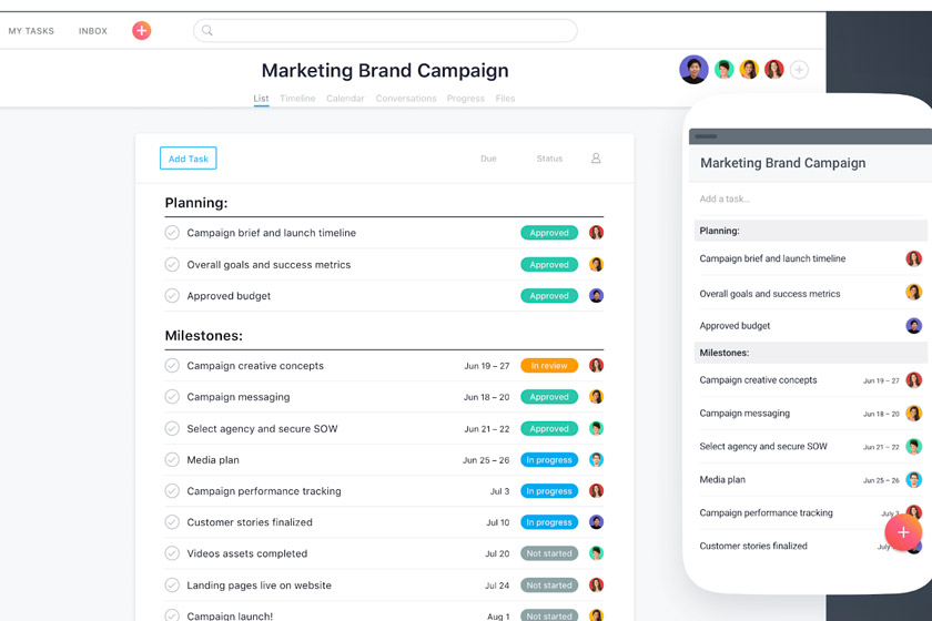 آنچه Asana را از دیگر ابزارهای مدیریت پروژه متمایز میکند، همین جدول زمانبندی عالی آن است. با این ویژگی، هر کار و پروژه نظم دارد، به این معنی که شما و تیمتان میتوانید به روشنی ببینید چه کاری باید انجام دهید و تا چه تاریخی، زمان برای تحویل هر کار دارید. اگر هر کار را قبل از رسیدن تاریخ سررسید انجام دهید، دیگر نگرانی بابت تاخیر خوردن نخواهید داشت و به راحتی میتوانید پروژه را نیز زودتر از موعد مقرر شده به پایان برسانید.