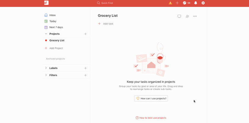 ایجاد پروژه در Todoist، پس از ثبت نام در آن بسیار ساده است و فقط چند ثانیه طول میکشد.