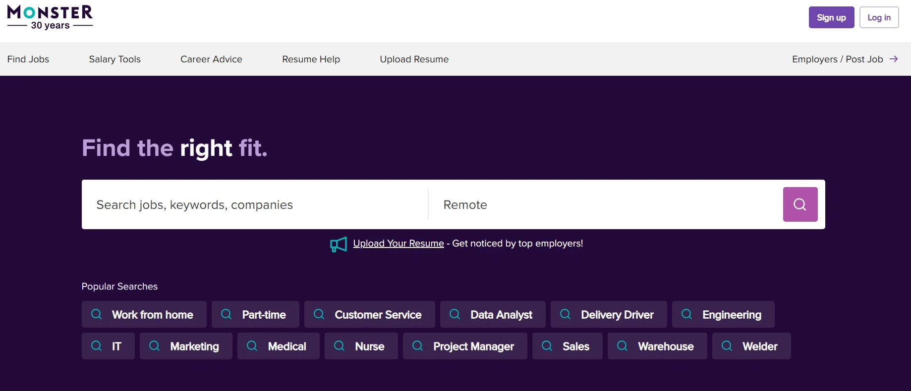 www.monster.com آدرس یکی دیگر از بهترین سایتهای کاریابی دنیاست که میلیونها شغل را در حوزههای متنوع (از کارهای کارگری تا مدیریتی) در کشورهای مختلف منتشر میکند. مقیاس کاری Monster جهانی است و از جمله سایتهای کاریابی باسابقه و پرمخاطب است.