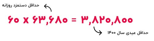 حداقل عیدی سال ۱۴۰۰ = ۶۰ x حداقل دستمزد روزانه