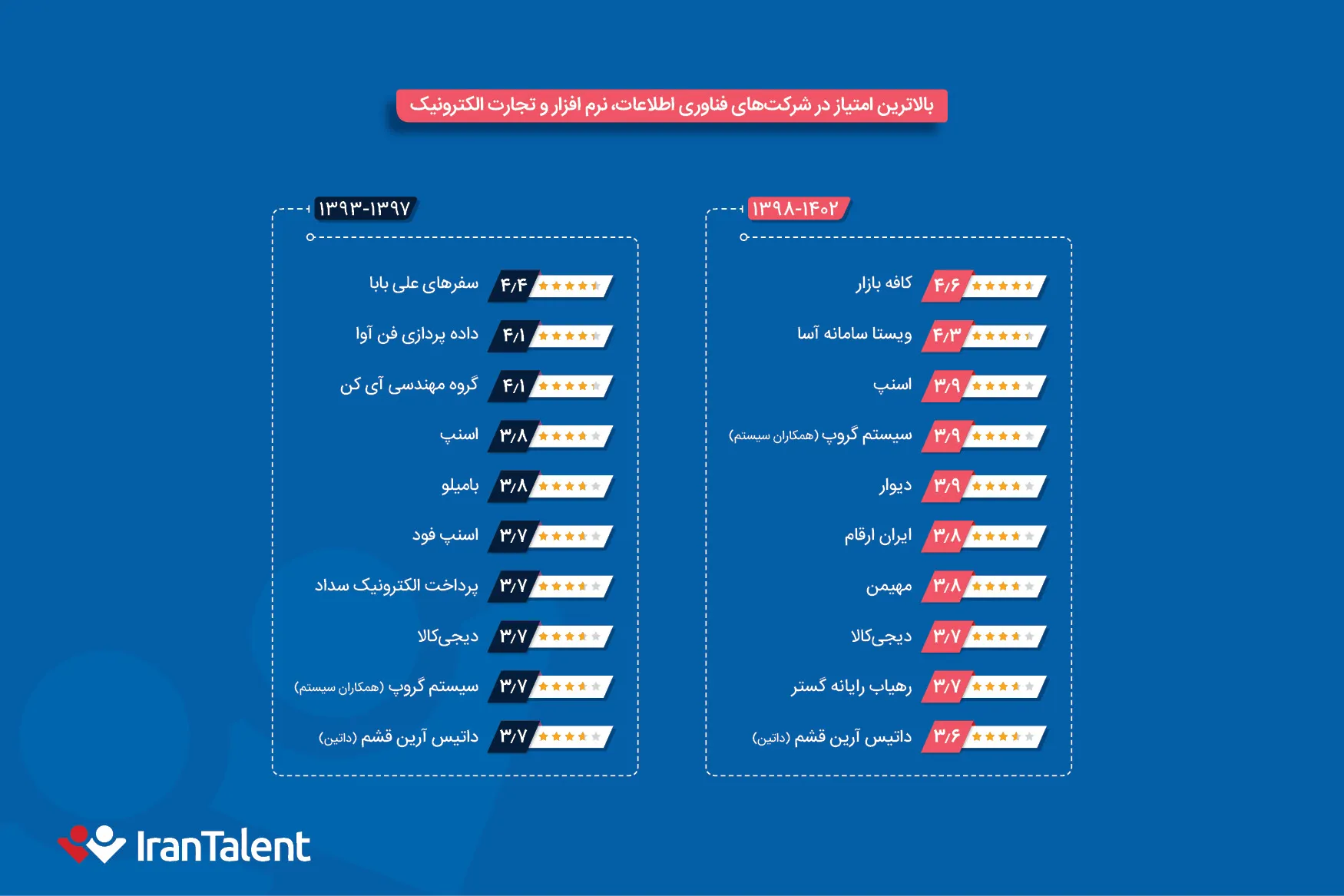 بالاترین امتیاز کارکنان در شرکتهای فناوری اطلاعات و خدمات اینترنتی