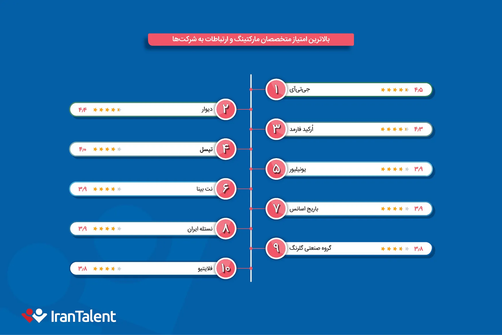 بالاترین امتیاز متخصصان مارکتینگ و ارتباطات به شرکتها