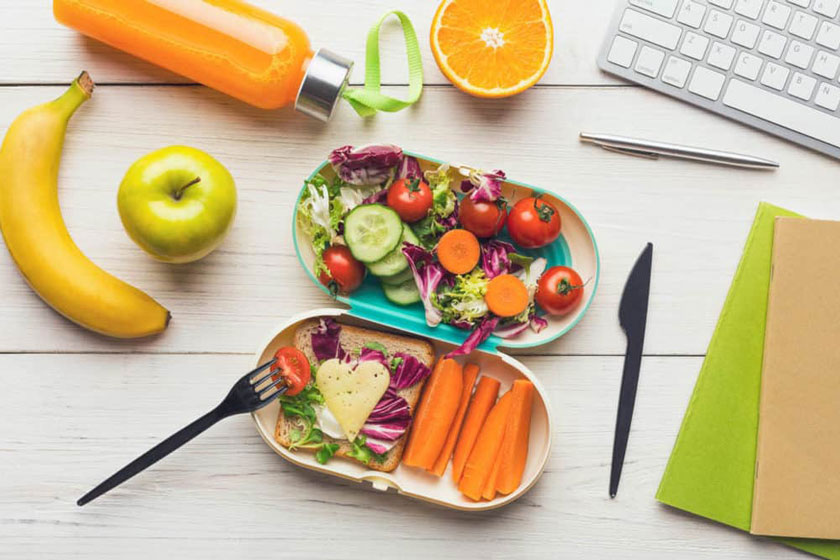 اگر کار شما به گونهای است که زمان برای آماده کردن غذا ندارید، میتوانید یک تکه ماهی سرخ شده و یا مرغ پخته شده را همراه خود ببرید که آماده کردن آن زمان زیادی از شما نگیرد. حتی بهتر از آن، اگر یخچال در محل کار وجود دارد، غذاهای آماده یا باقیمانده غذای خود را در کیسهای با نام خود در آن قرار دهید و روز بعد از آن استفاده کنید.