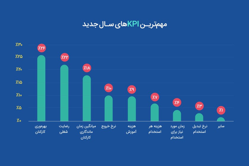 بخش اول این گزارش به بررسی مهمترین KPIهای سال جدید منابع انسانی شرکتها پرداخته است. بر اساس این گزارش «بهرهوری کارکنان» مهمترین ماموریت منابع انسانی سازمانها در سال جدید خواهد بود. «رضایت شغلی» نیز دیگر شاخص مهم عملکرد در حوزه منابع انسانی است که در رده دوم قرار گرفته است. دیگر KPIهای سال جدید منابع انسانی شرکتها عبارت است از: «میانگین زمان ماندگاری کارکنان»، «نرخ خروج»، «هزینه آموزش»، «هزینه هر استخدام»، «زمان مورد نیاز برای هر استخدام» و «نرخ تبدیل استخدام».