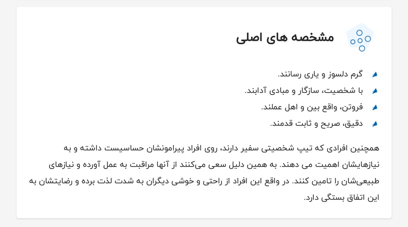 بیان مشخصات اصلی برای هر تیپ شخصیتی، بخش بعدی نتیجه این تست است که به صورت دقیق، فرد را آنچه است آشنا میکند.