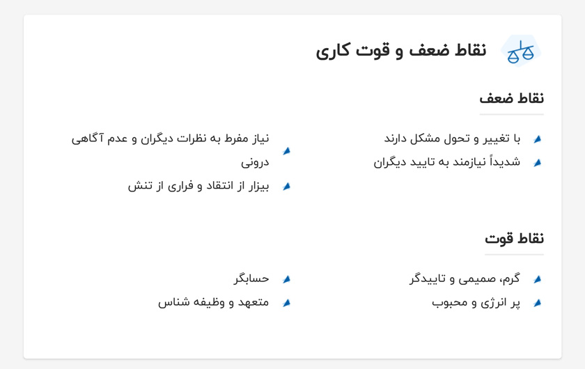 اما سه بخش اصلی در تست، میتوانند مشاغل مرتبط و مناسب تیپ شخصیتی شما، نقاط ضعف و قوت شما در کار و همچنین شخصیت کاری شما باشد. با کمک این اطلاعات میتوانید مسیر خود در انتخاب شغل را دقیقتر انتخاب کنید و در محیط کار با همکاران و دیگر اعضای تیم همکاری بهتر و موثرتری داشته باشید.