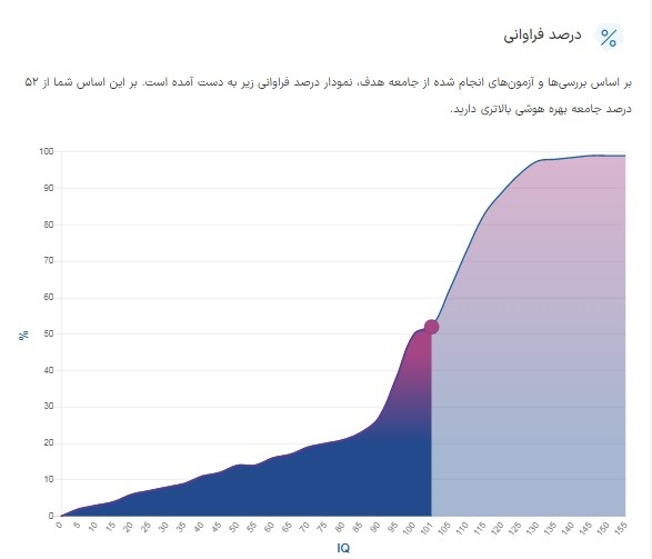 دو: درصد فراوانی و مقایسه نتیجه آزمون شما با سایر افراد جامعه