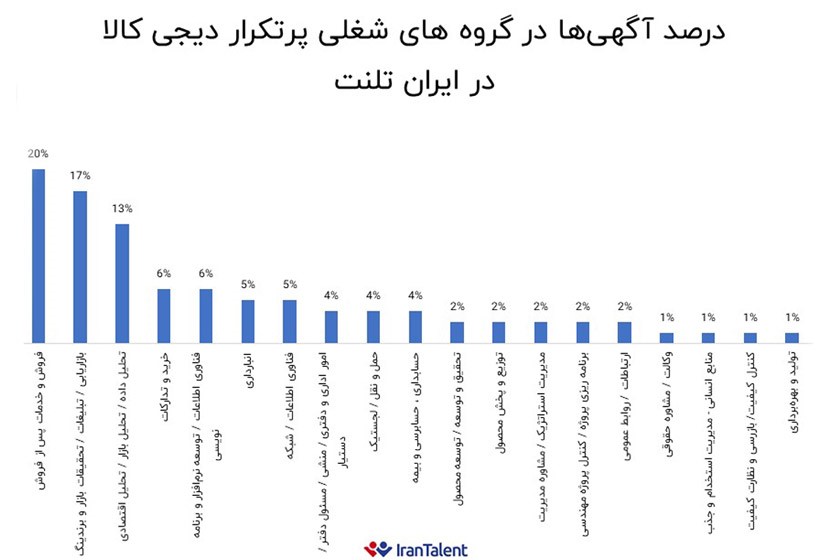 اما نمودار زیر به ترتیب آگهیهای استخدامی پرتکرار را علاوه بر موارد بالا نشان میدهد: