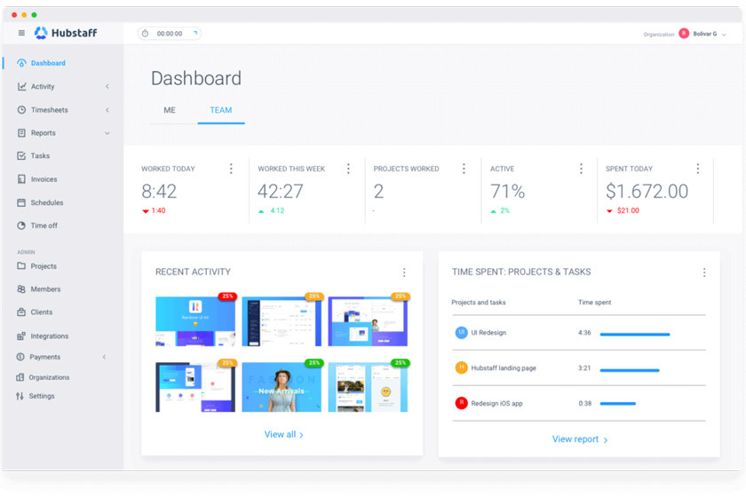 در داشبورد Hubstaff میتوانید موارد زیر را ببینید: