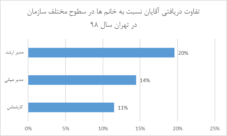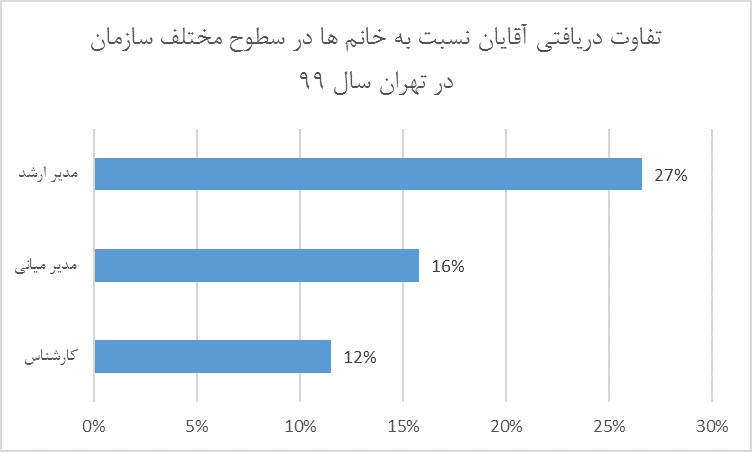 تفاوت دریافتی آقایان نسبت به خانمها در سطوح مختلف سازمان در تهران
