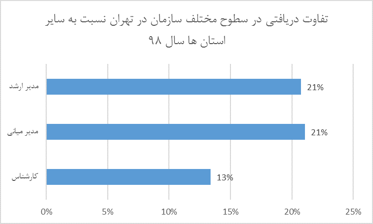 تفاوت دریافتی در سطوح مختلف سازمان در تهران نسبت به سایر استانها