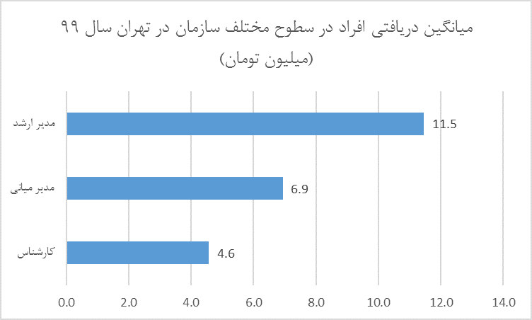 میانگین دریافتی افراد در سطوح مختلف سازمان در تهران
