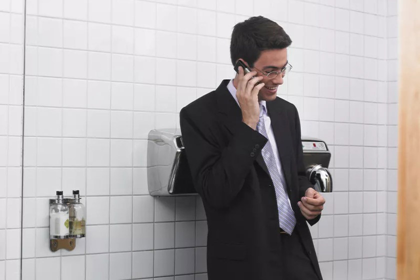 چه در محل کار یا هر جای دیگر، این یک قانون مهم در مورد آداب استفاده از تلفن همراه است. چرا؟ خب این کار هم برای کسی که دارید با او صحبت میکنید و هم برای کسی که در دستشویی حضور دارد، نوعی بی ادبی به شمار میآید. این کار باعث میشود که همکاران شما در مورد حریم خصوصی خود در شرکت احساس ناامنی کنند و این حس اصلا برای آنها خوشایند نیست. در مورد شخصی که با او صحبت میکنید هم، نیازی نیست توضیح دهیم چرا که هیچ کس دوست ندارد بفهمد طرف مقابل دارد از دستشویی با او صحبت میکند.