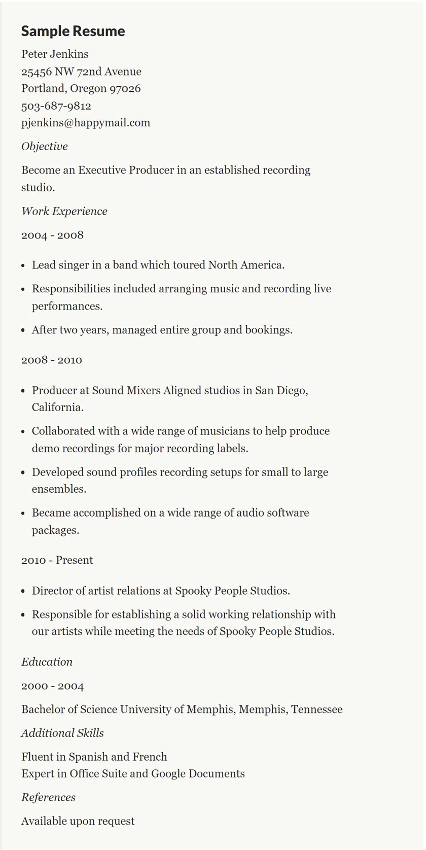 - تجربه کاری را با آخرین شغل خود شروع کنید. مشخصات شرکت و مسئولیتهای خود را درج کنید و بر مهارتهایی که در مشاغل قبلی خود به دست آوردید، تاکید کنید. فهرست کردن تمام سوابق کاری خود را از آخرین به اولین انجام دهید. به یاد داشته باشید که در لیست کردن سوابق کاری به کارهایی که انجام دادید با عدد و درصد اشاره کنید.